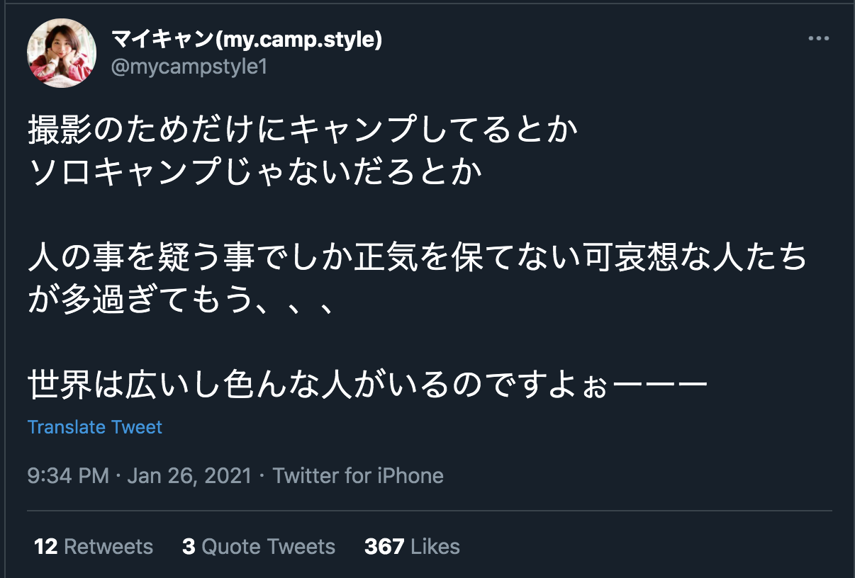 — マイキャン(my.camp.style) (@mycampstyle1) January 26, 2021